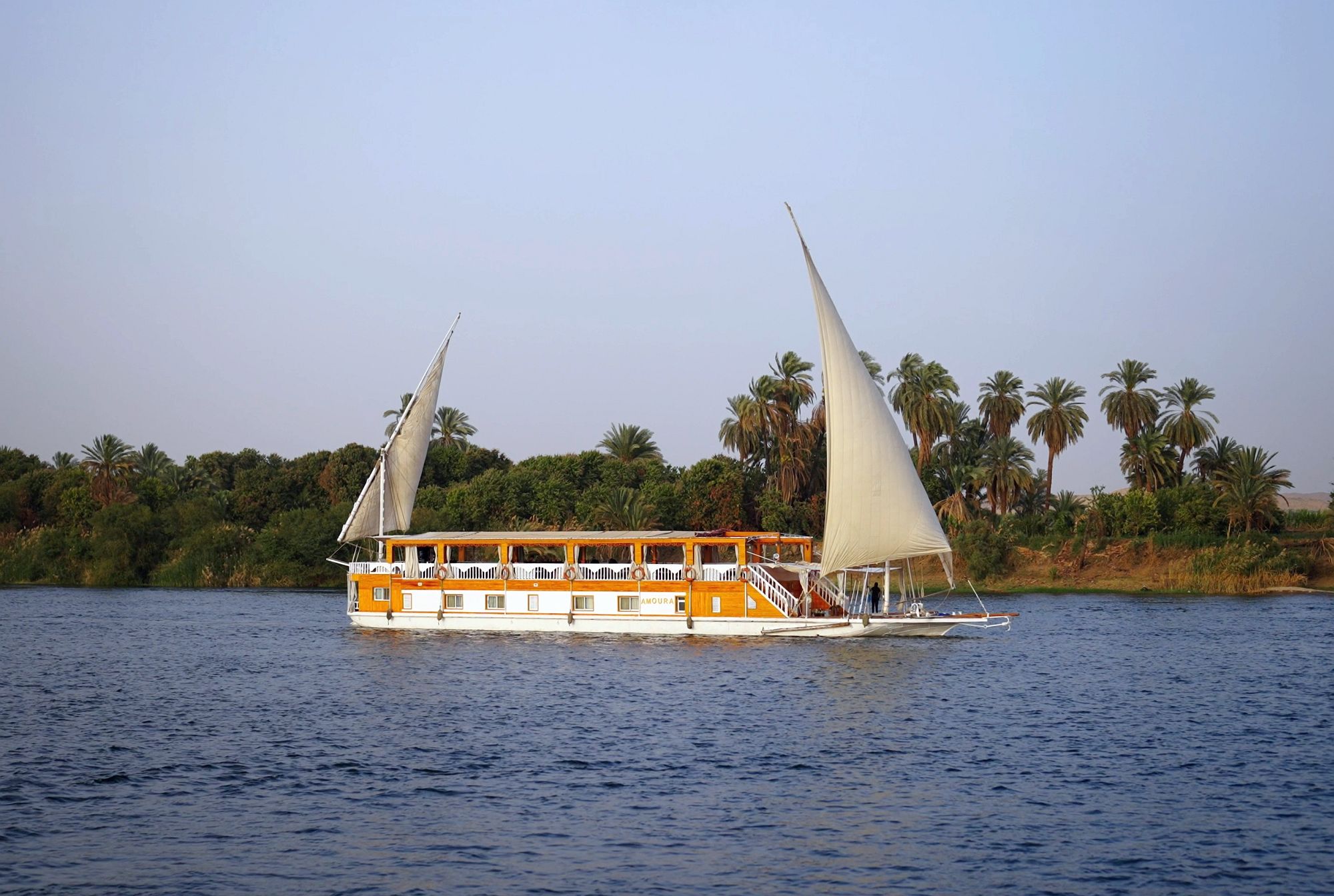 Segeln Sie mit dem „goldenen“ Boot, einer Dahabeya, auf dem Nil wie einst die Pharaonen. Fernab der Hektik eines großen Hotelschiffes, ist die Amoura als klassischer Nilsegler ein Ort der Ruhe und Beschaulichkeit. Hier können Sie die stimmungsvollen Landschaften des Nils zwischen Luxor und Assuan in exklusiver Atmosphäre völlig entschleunigt genießen. Erleben Sie eindrucksvolle Sonnenuntergänge, einsame Nil-Inseln und fast vergessene Tempel auf einer sechstägigen Reise, mit vier Nächten an Bord der Amoura und lassen Sie mal richtig die Seele baumeln.
