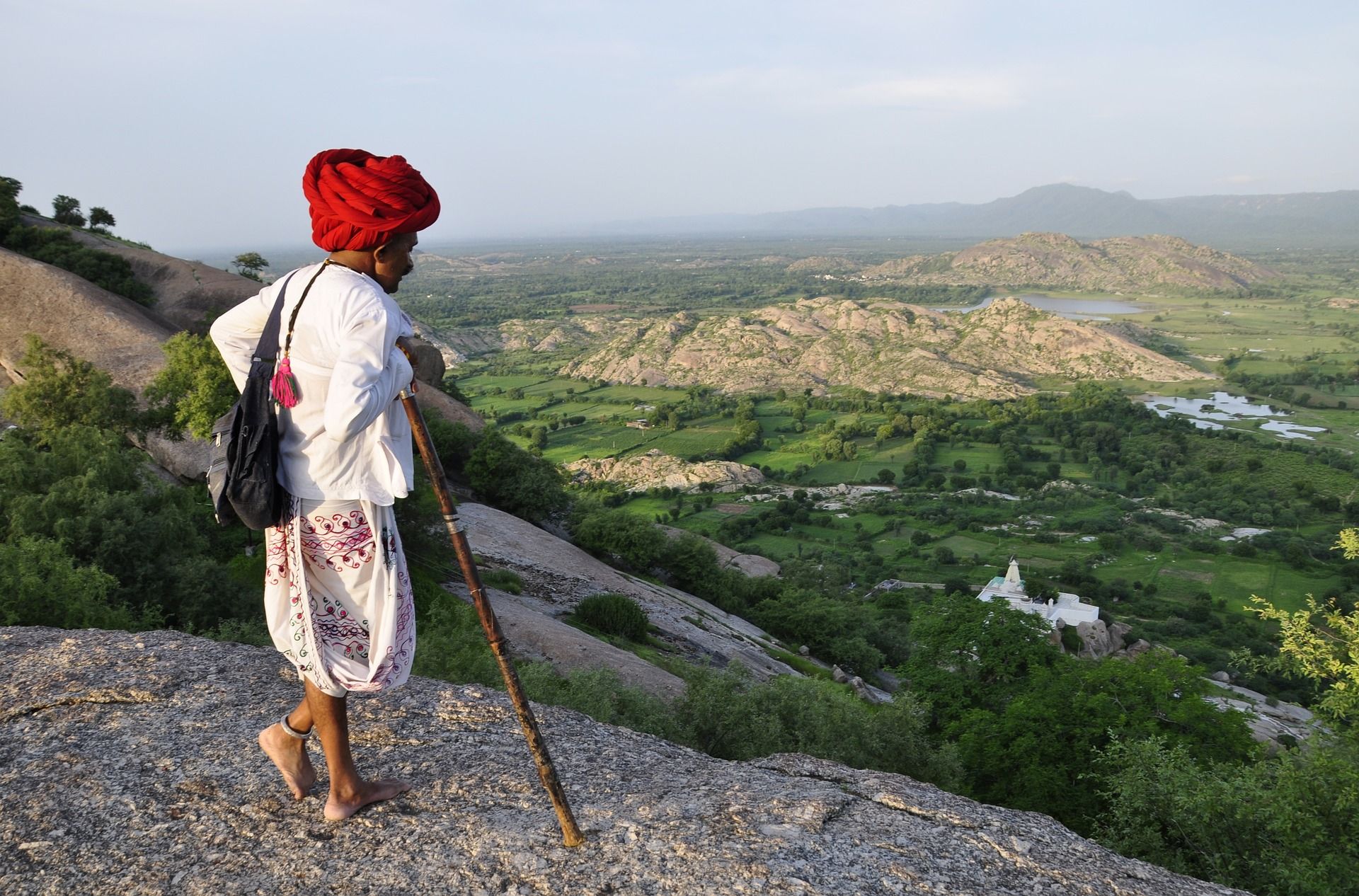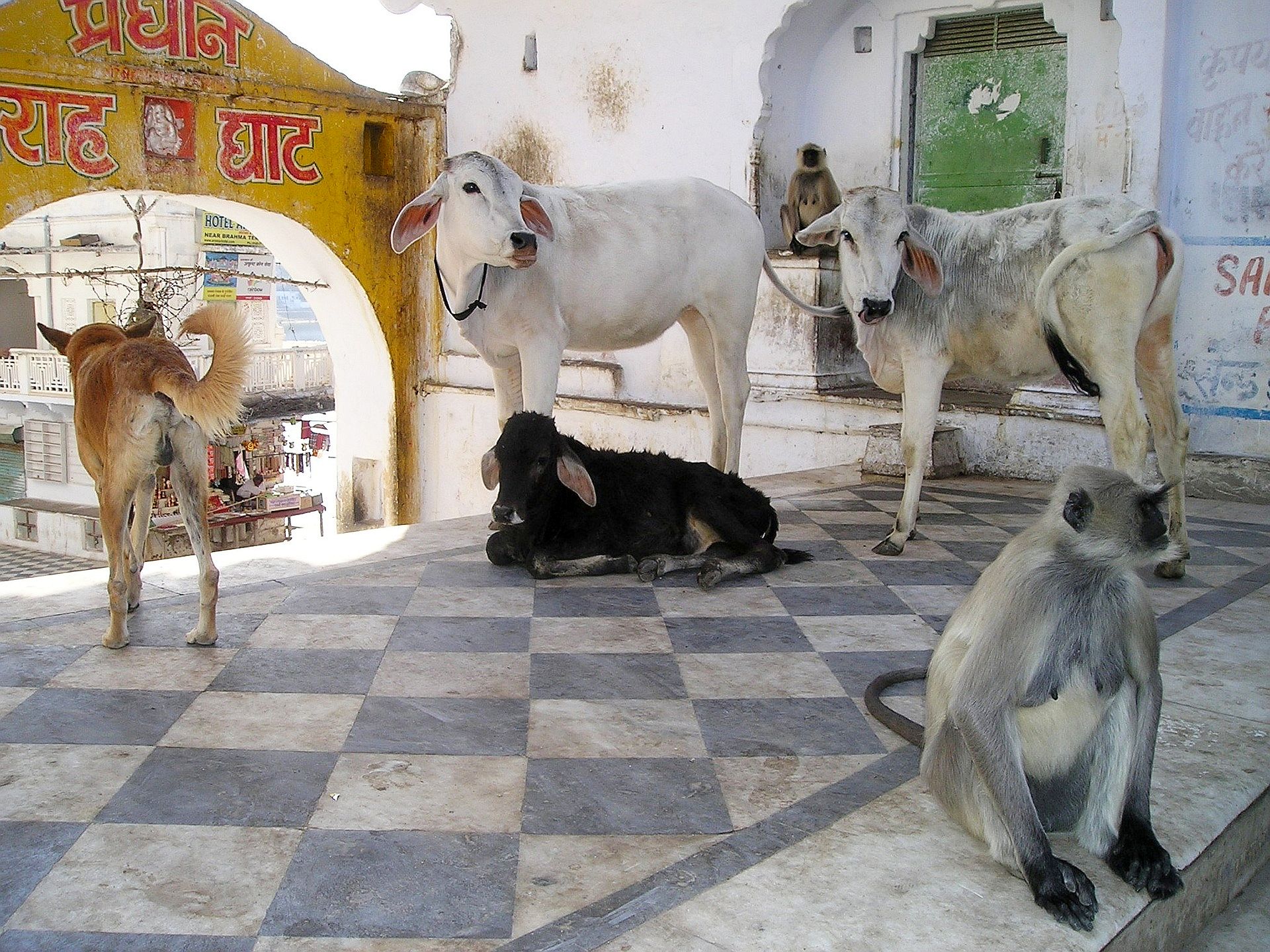 Vormittags Fahrt durch die Halbwüste Rajasthans nach Pushkar. Auf indischen Straßen gibt es immer viel zu sehen und zu erleben. Sei es die Familie, die zu fünft auf einem Mofa einen Ausflug machen oder das allgegenwärtige Hupen, das eine Art eigene Sprache ist und immer und überall in unterschiedlicher Intensität angewendet wird. Die einzigen Verkehrsteilnehmer, die nicht angehupt werden, sind die sich gemächlich über die Durchgangsstraßen bewegenden heiligen Kühe. In Rajasthan trifft man aber auch auf Kamelkarren und natürlich sind viele Menschen zu Fuß unterwegs: Schulkinder in ihren Uniformen, Pilger auf dem Weg zum nächsten Tempel, Snackverkäufer.
