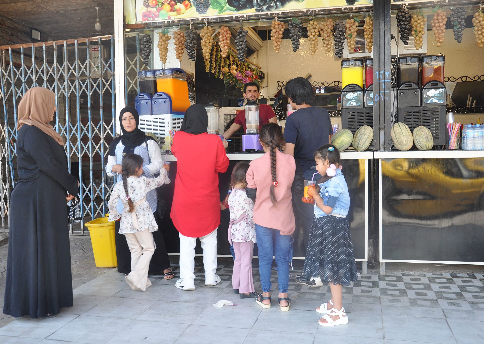 Der Tag ist den Jesidinnen gewidmet. Fahrt nach Dohuk im Norden der Kurdengebiete. Wir genießen die grüne Landschaft, die im krassen Gegensatz zu den Wüstengebieten im Südirak steht. In Dohuk treffen wir Jesidinnen, die schlimme Erinnerungen an die Terrormiliz Islamischer Staat haben. Der Genozid an den Jesiden durch die Dschihadisten ist vom deutschen Bundestag anerkannt worden. „Wadi“ betreibt in Dohuk das Erholungszentrum „Jinda“ für Frauen, die ihre Traumata der IS-Gefangenschaft überwinden wollen. Spätes Mittagessen mit Jesidinnen.