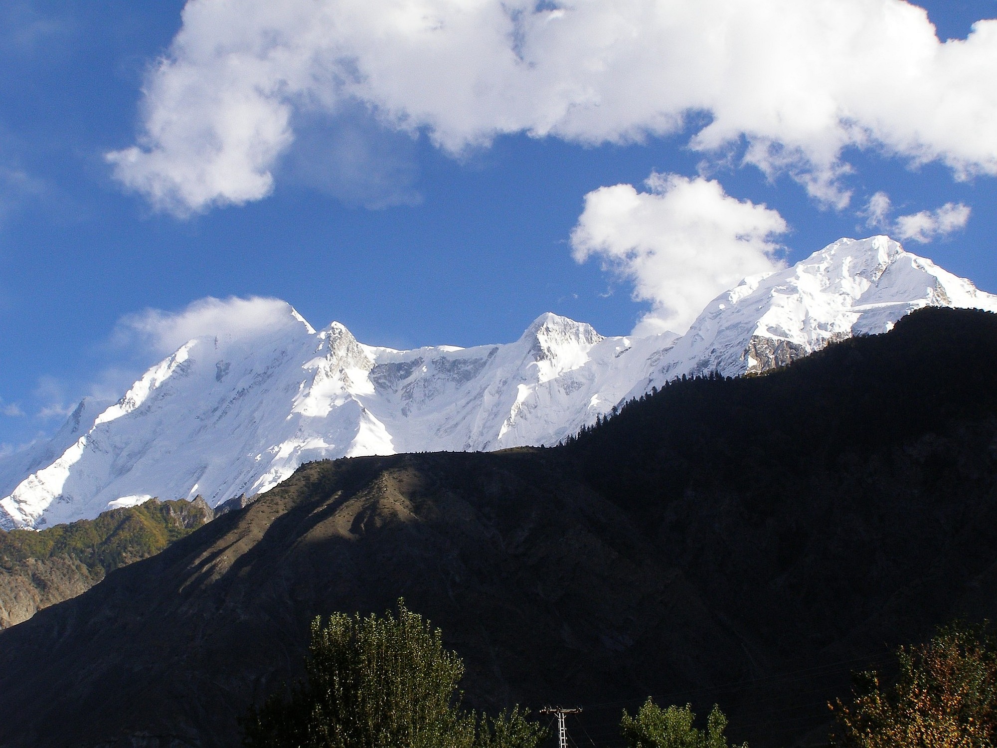 Am Morgen wandern Sie circa drei Stunden zurück zum Dorf Tato, wo Sie von den Geländewagen mitgenommen werden bis zur Raikiot Bridge. Dort steigen Sie um in Ihren Bus und fahren über den Karakorum Highway in Richtung Hunza-Tal. Unterwegs Foto-Stopps an einem Nanga Parbat Aussichtspunkt, an dem Ort, wo die mächtigen Gebirgsketten Himalaya, Hindukusch und Karakorum zusammentreffen, bei der Danyoor Hängebrücke und bei einem Teil der alten Seidenstraße. Pause in der Mittagszeit an einem Aussichtspunkt mit Blick auf den 7.788 Meter hohen Rakaposhi. Auf Wunsch können Sie hier auch ein kurzes Stück zu einem Gletscher hochklettern. Danach Fortsetzung der Fahrt nach Karimabad, dem Tor zum Hunza-Tal. Heute übernachten Sie in einem komfortablen Hotel.