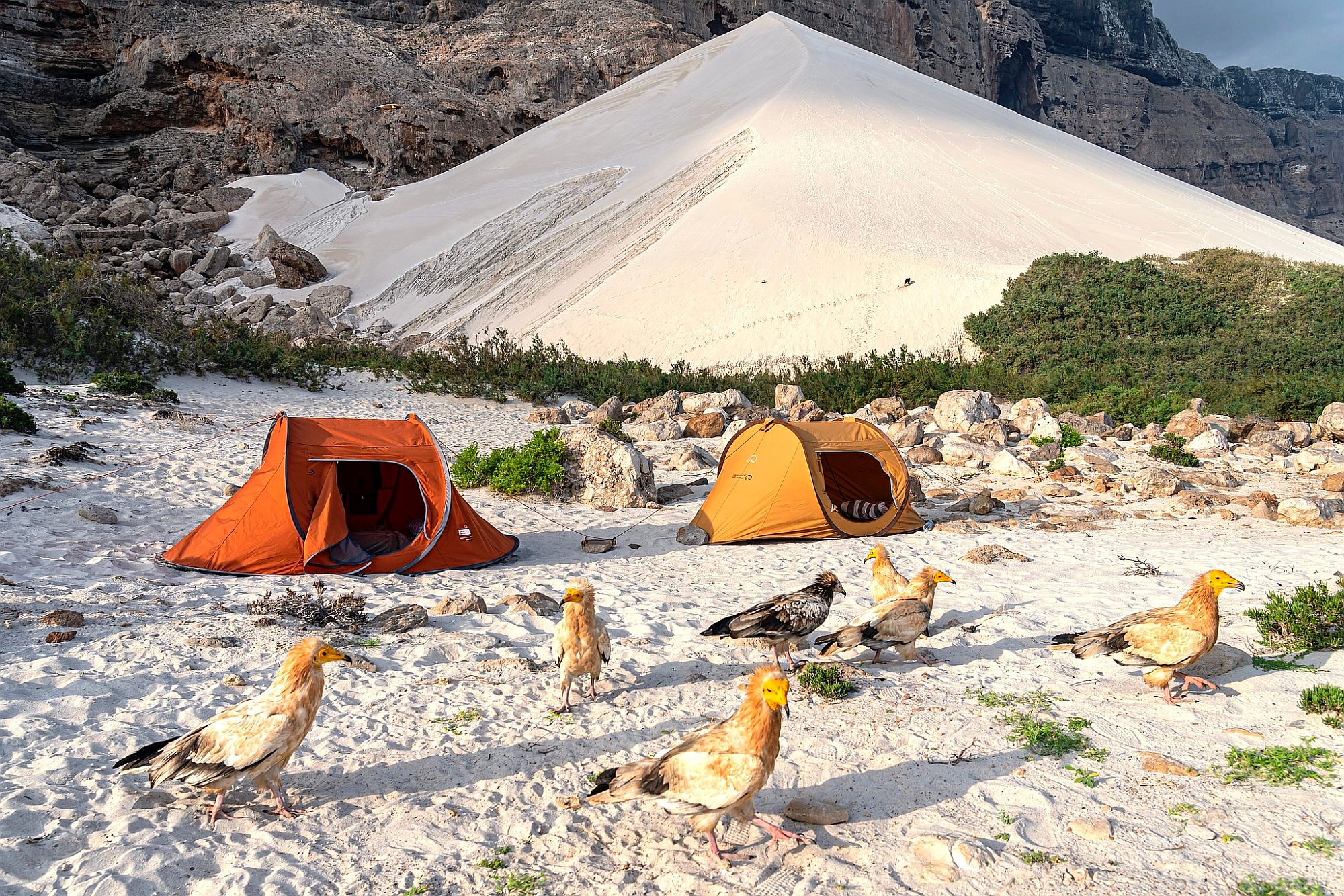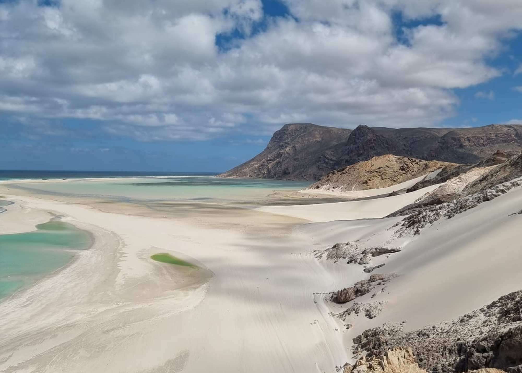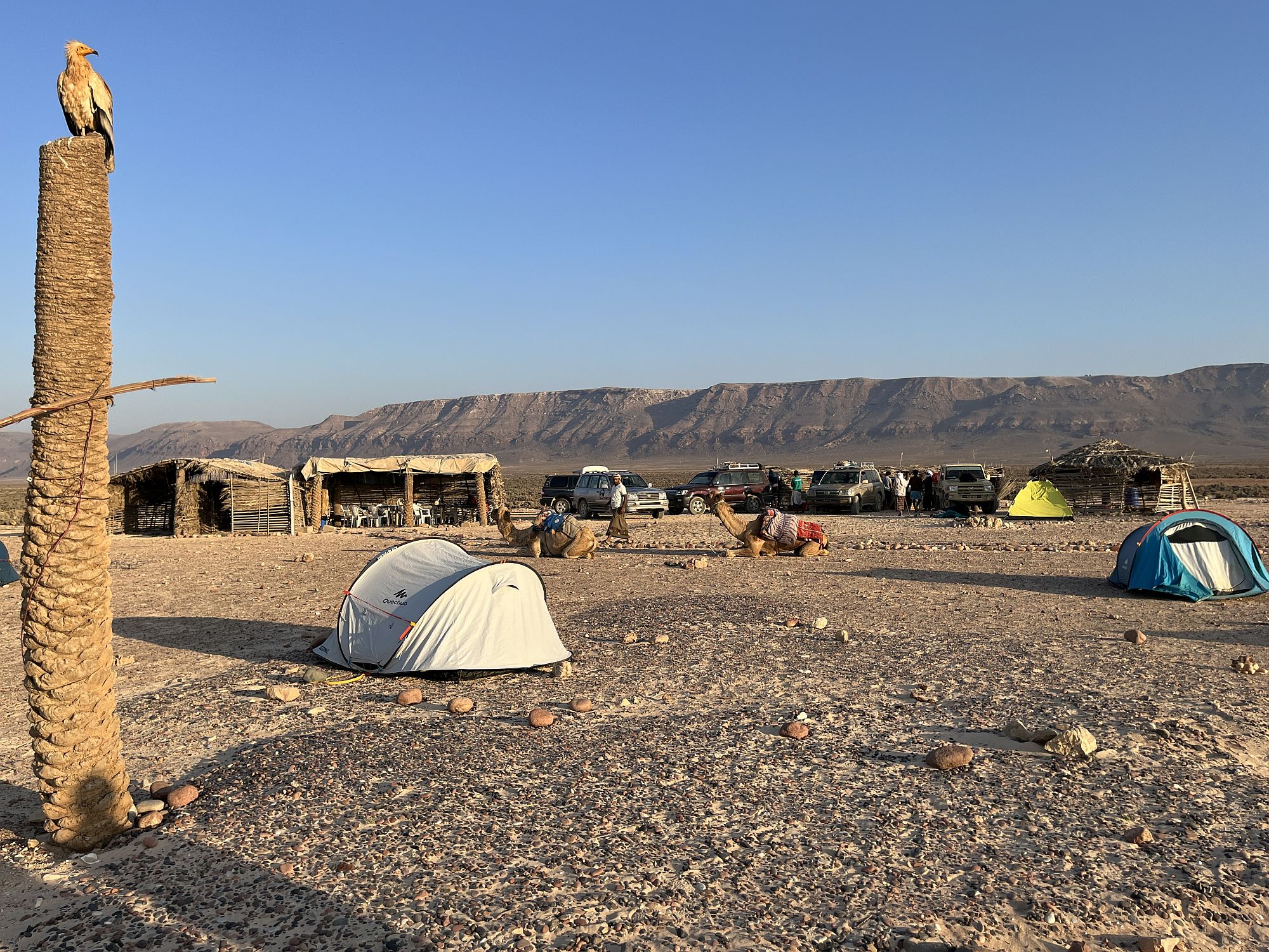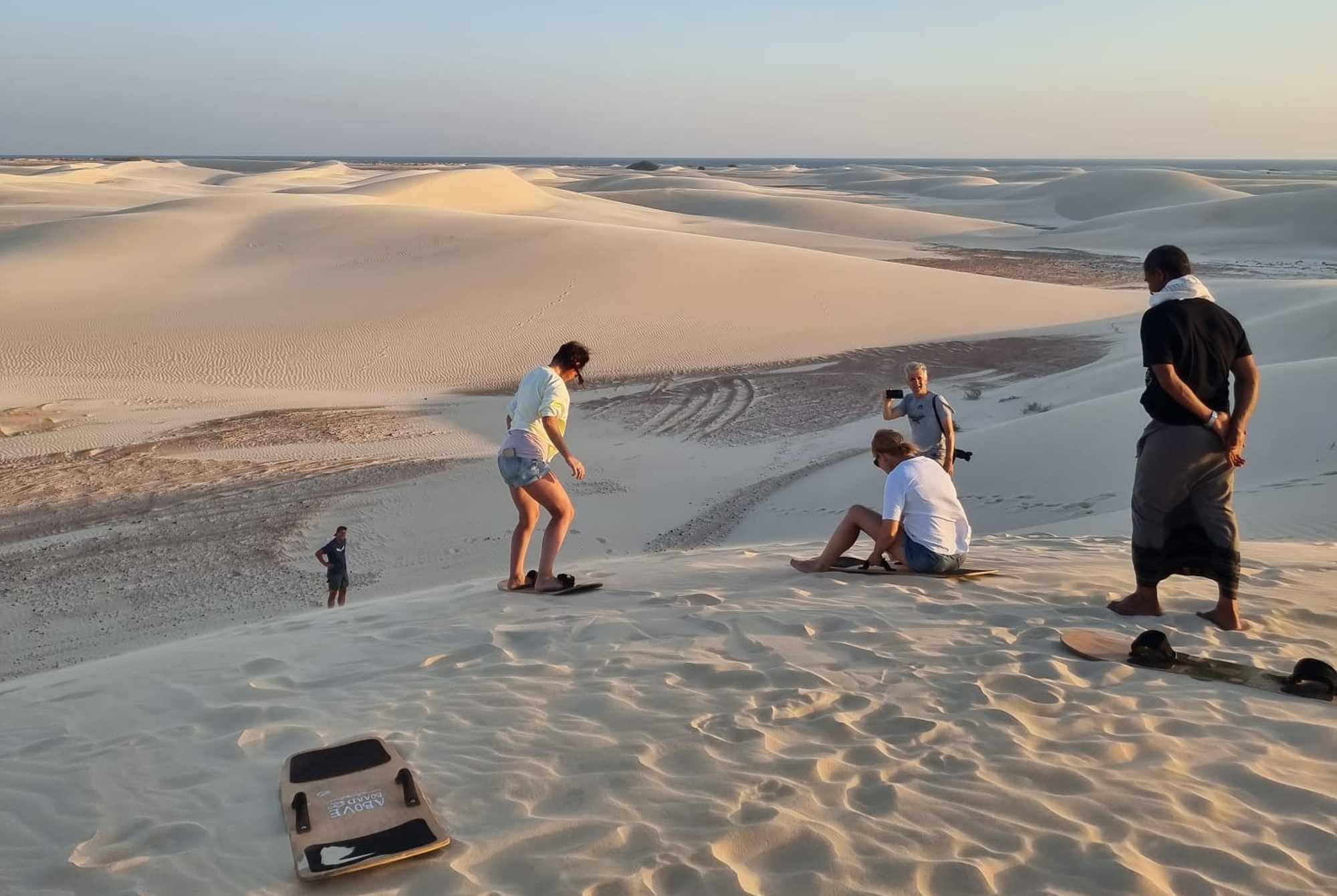 Bei Ankunft auf Sokotra wartet Ihr lokaler Reiseleiter schon auf Sie. Vom Flughafen geht es zunächst in den Hauptort Hadibu. Nach dem Mittagessen Weiterfahrt gen Osten direkt zu Ihrem ersten Campingplatz bei Arher, wo große weiße Sanddünen und ein weitläufiger Strand Sie erwarten.