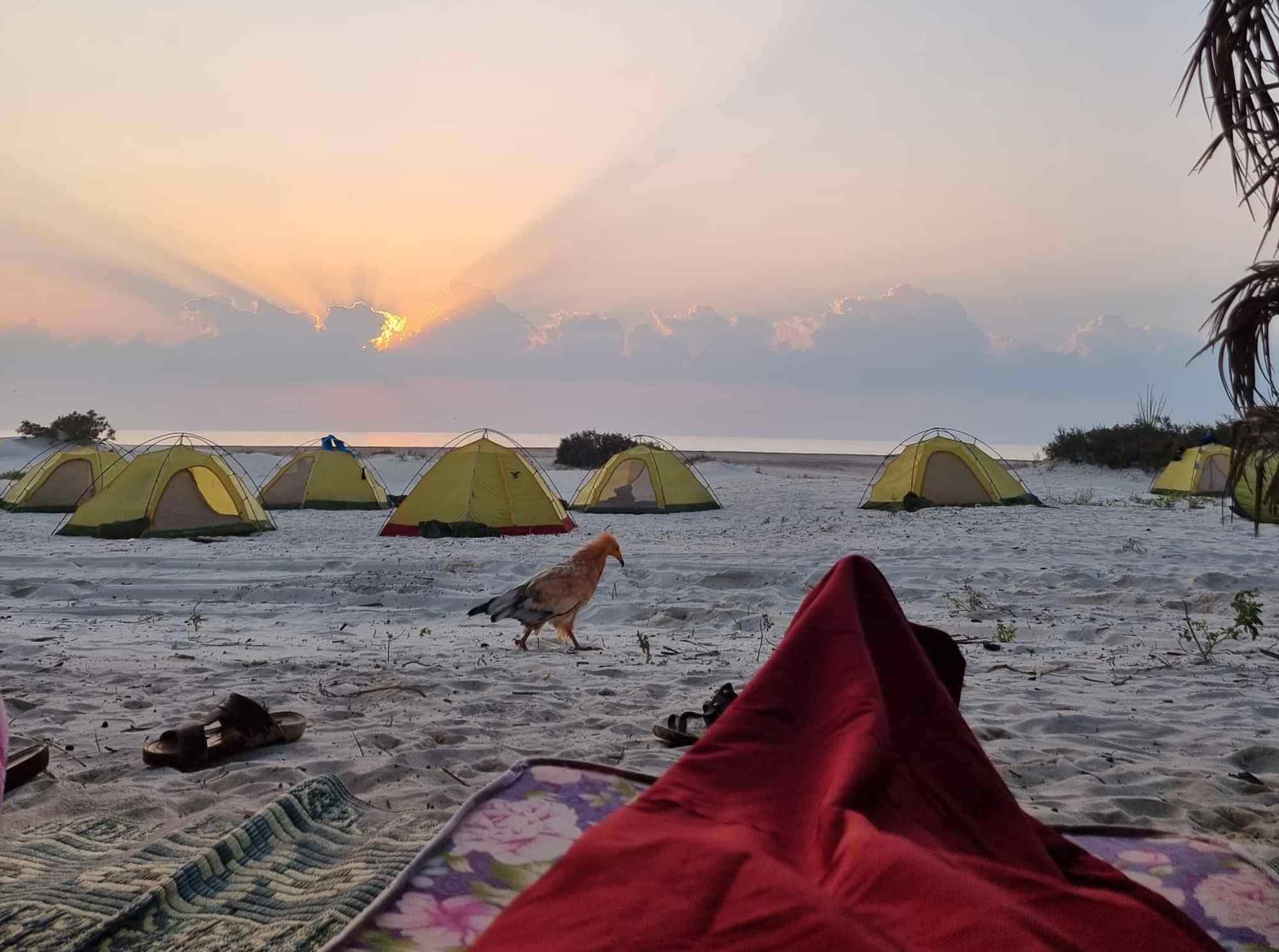 Bereits am ersten Tag schwimmen oder schnorcheln Sie im Arabischen Meer und genießen eine Dusche aus Frischwasser-Quellen. Sandboarding oder Klettern in den Dünen mit Erkundung einiger Höhlen in der Nähe sind ebenso möglich. Abendessen und Zeltübernachtung am Strand