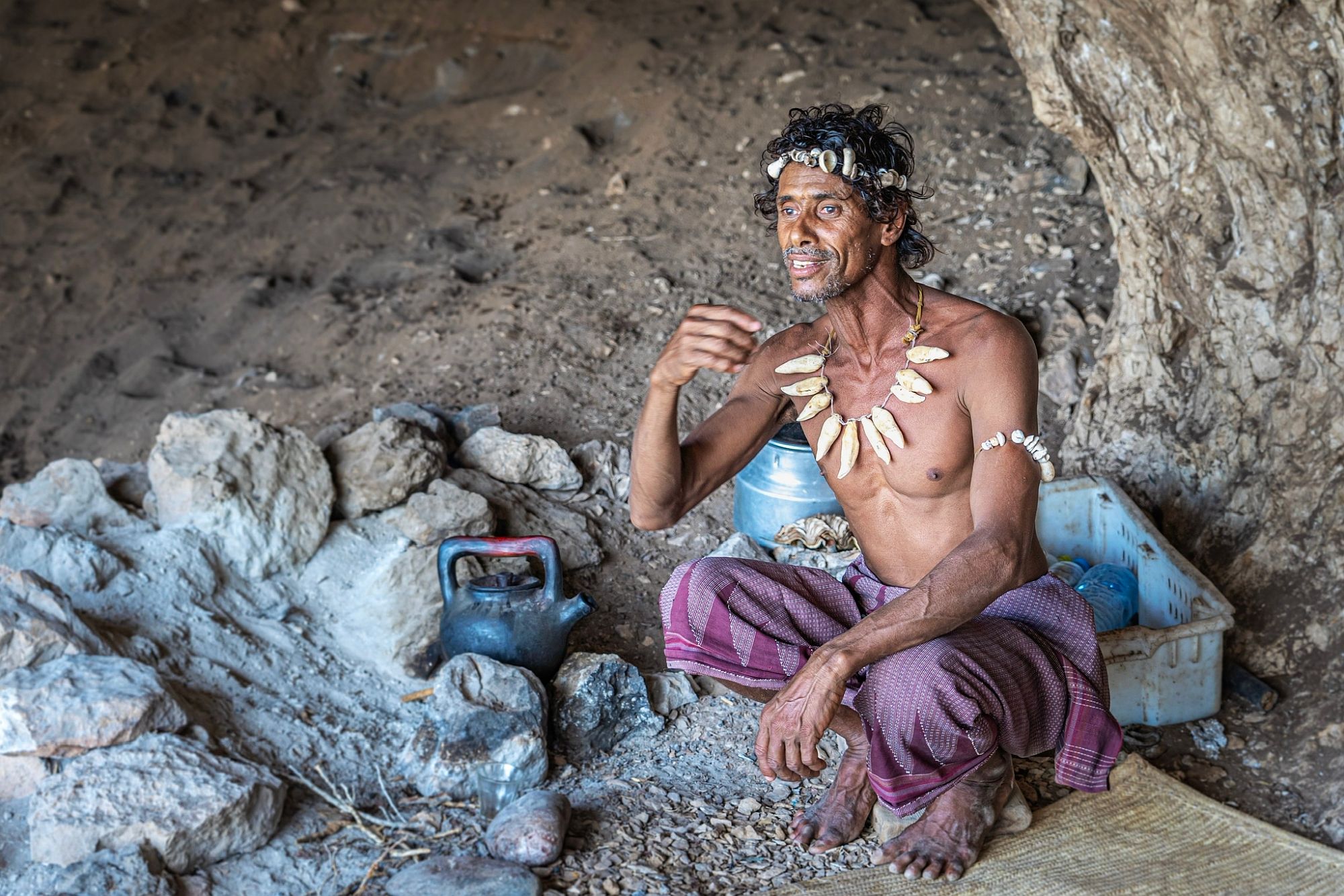 Eventuell statten Sie dann Herrn Aliyah, dem letzten „Höhlenmann“ Sokotras, einen Besuch ab. Jedes Jahr besuchen hunderte Touristen ihn in seiner Höhle, um Geschichten über das Leben in der Höhle, das Land und die Menschen zu hören. Tatsächlich lebten viele Einwohner auf dem Land lange Zeit in Höhlen, die heute noch häufig als Ställe für das Vieh genutzt werden.