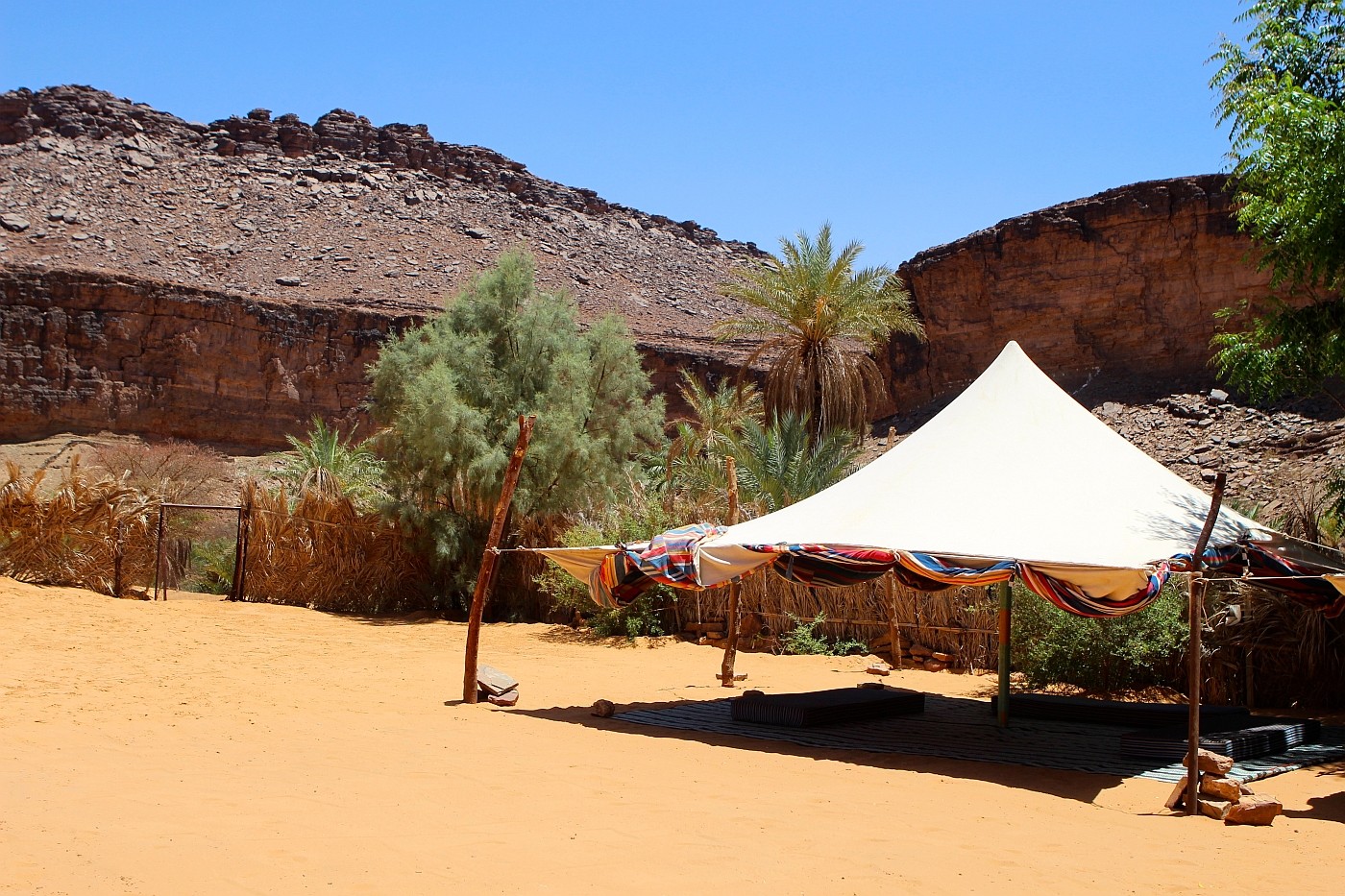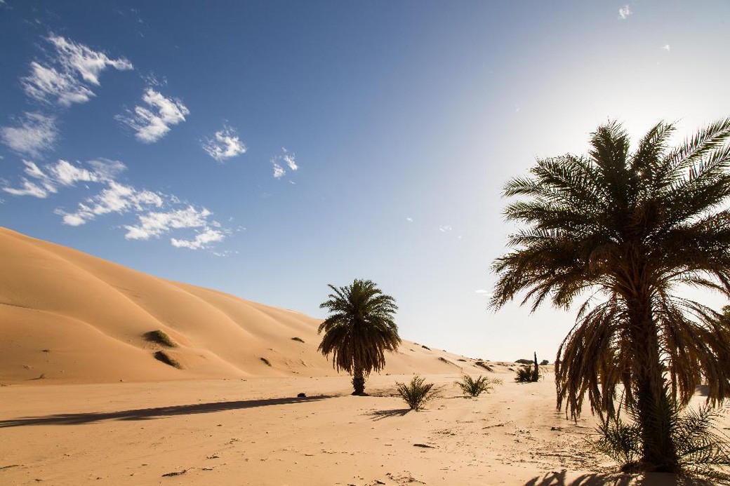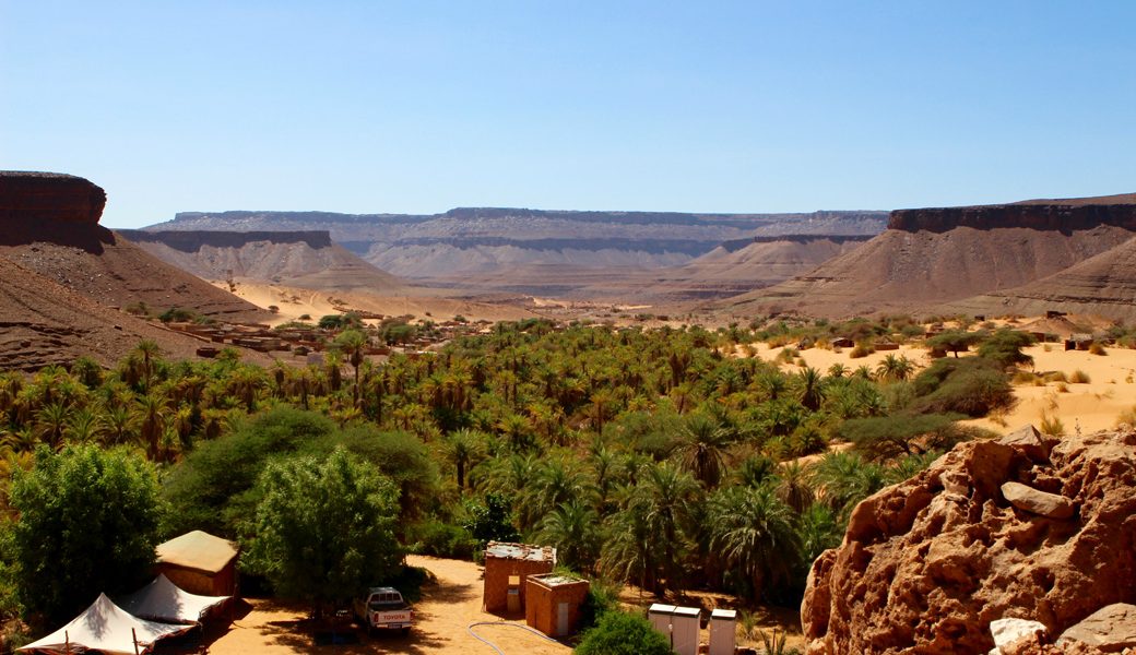 Nach dem Frühstück Fahrt in die Oase Terjit mit ihren kalten und warmen Quellen. Auf dem Weg kommen Sie durch die Oase Mheirith, die größte Oase in der Adrar Region. Hier werden Sie zu Mittag essen. Und können je nach Jahreszeit ein Bad in einem natürlichen Pool nehmen. Weiter nach Terjit. Unterwegs Besuch von Aojeft und anschließend weiter durch die Oase von Toungad. Durch ein Sandmeer geht es durch das Tal, um den phantastischen Aussichtspunkt von Tivoujar zu erreichen. Abends Ankunft in Terjit. Gamal´s Camp. Übernachtung.