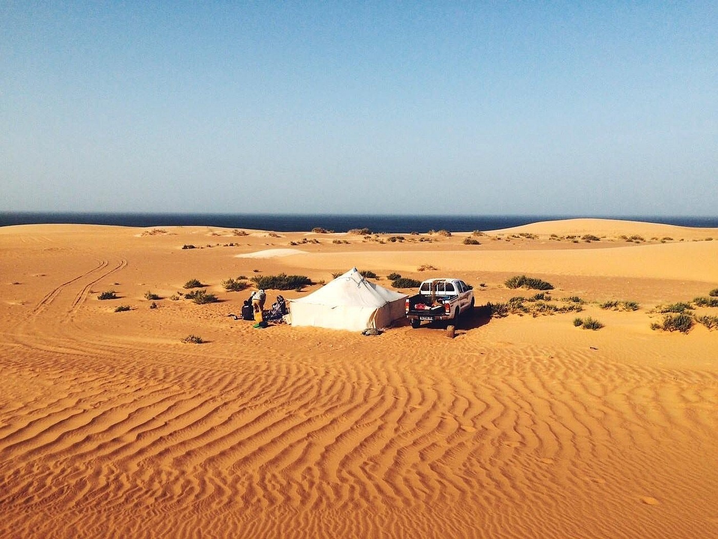 Danach Weiterfahrt zum Cap Tafarit im Nationalpark Banc d`Arguin am Meer. Nach der Mittagspause fahren Sie weiter zu einem kleinen Fischerdorf, das unweit vom Cap Tafrit liegt. Besichtigung von Iwik. Zeltübernachtung.