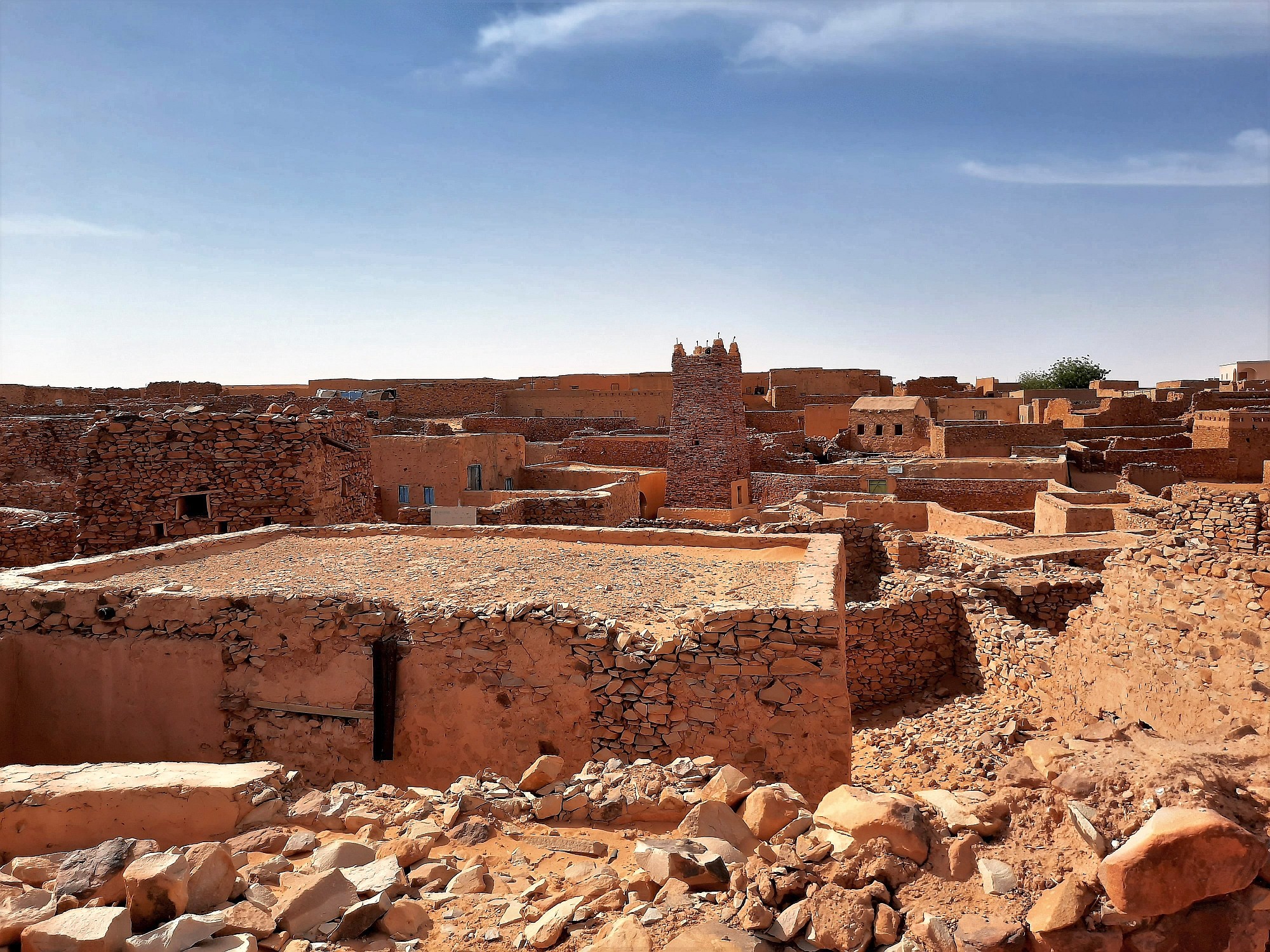 Nach dem Frühstück Fahrt durch die Sanddünen zur alten Stadt Ouadane (ca. 2 – 3 Stunden). Unterwegs machen Sie eine Teepause bei Nomaden in der Oase Tenochert. Gegen Mittag erreichen Sie Ouadane. Mittagessen im Gästehaus. Anschließend Besichtigung der Altstadt und der Stadtmauer. Auch in Ouadane gibt es wertvolle alte Manuskripte in überwiegend privaten Bibliotheken und gut erhaltene Ruinen des befestigten Handelspostens (Ksar, UNESCO Weltkulturerbe). Hier wurde Gold gegen Salz und Datteln verhandelt. Gegen Abend erleben Sie den Sonnenuntergang über der Altstadt und fahren anschließend zurück ins Gästehaus. Übernachtung.
