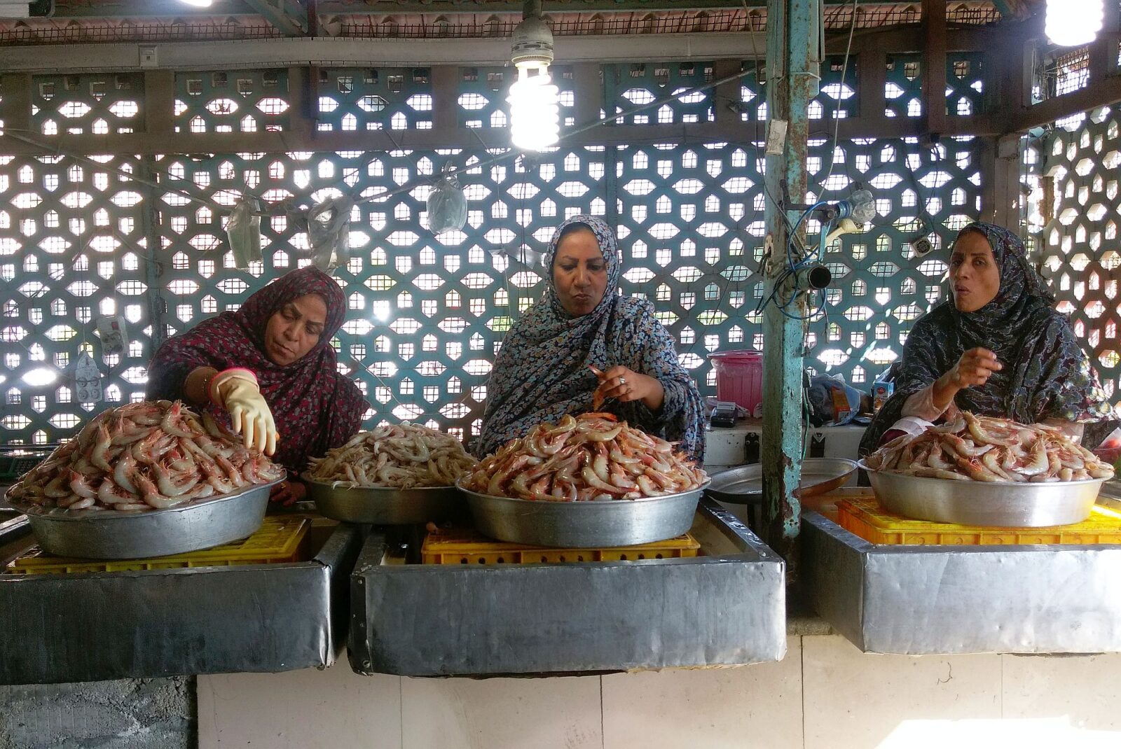 Die Frauen kleiden sich hier seit alters her völlig anders als im übrigen Iran. Häufig tragen sie traditionelle Gesichtsmasken sowie teilweise bunte Gewänder über den Hosen und der arabische Einfluss ist in dieser Region unverkennbar.
