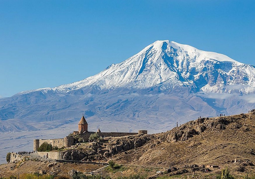 Anschließend fahren Sie weiter und halten bei den teilweise restaurierten Ruinen von Zvartnots – einer monumentalen Rundkirche aus dem 7. Jh. und UNESCO-Weltkulturerbe. Weiterfahrt in die Provinz Ararat, nahe des armenisch-türkischen Grenzgebietes. Unmittelbar hinter der Grenze steigen die Hänge des mächtigen Berges Ararat an, schneebedeckt und über 5.000 m hoch. Vielleicht haben Sie Glück und bei gutem Wetter einen freien Blick auf den Berg. Das nahe gelegene Kloster Chor Virap (4. – 17. Jh.) hat eine reiche Geschichte zu bieten. Es geht bis auf Gregor den Erleuchteten zurück, der hier im Kloster 13 Jahre lang in einem der vielen Kellerverliese eingesperrt war. Rückfahrt nach Jerewan. Transfer zum Hotel und Übernachtung.