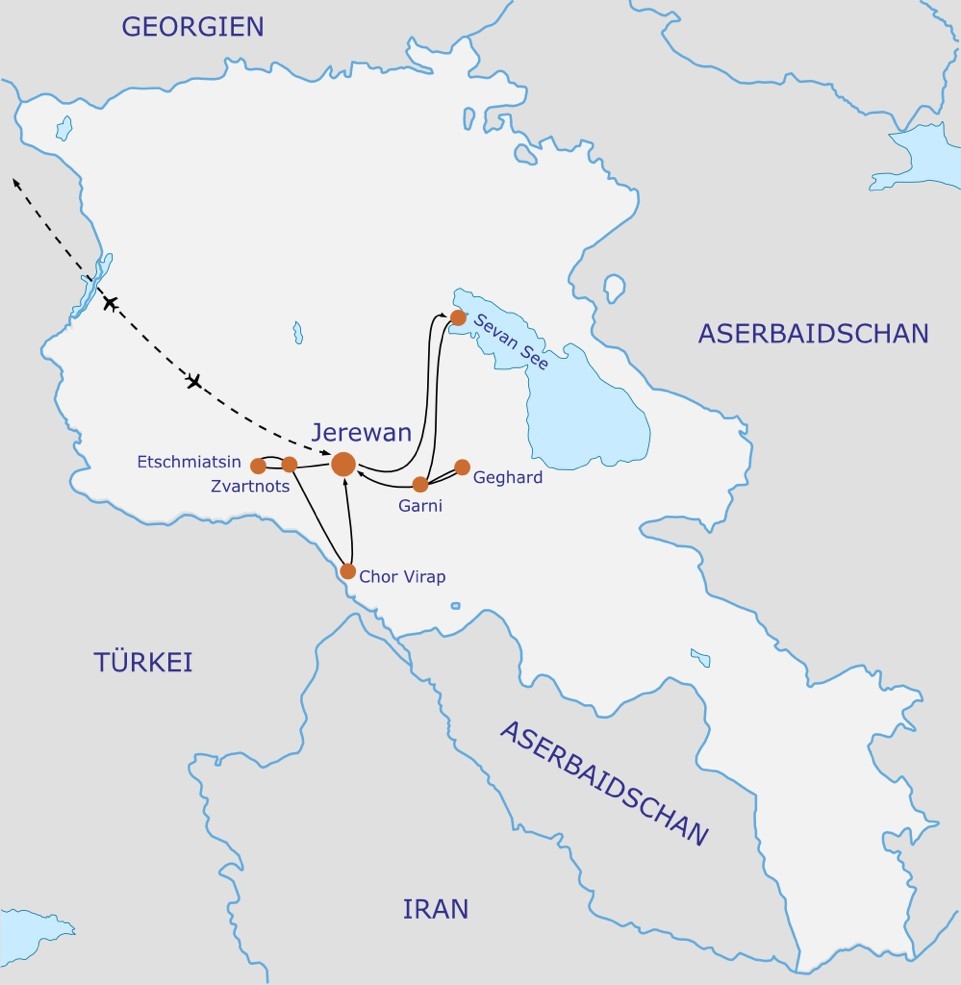 Aktuelle Informationen finden Sie unter: Link AA / Armenien. - Änderungen des Reiseverlaufs vorbehalten.