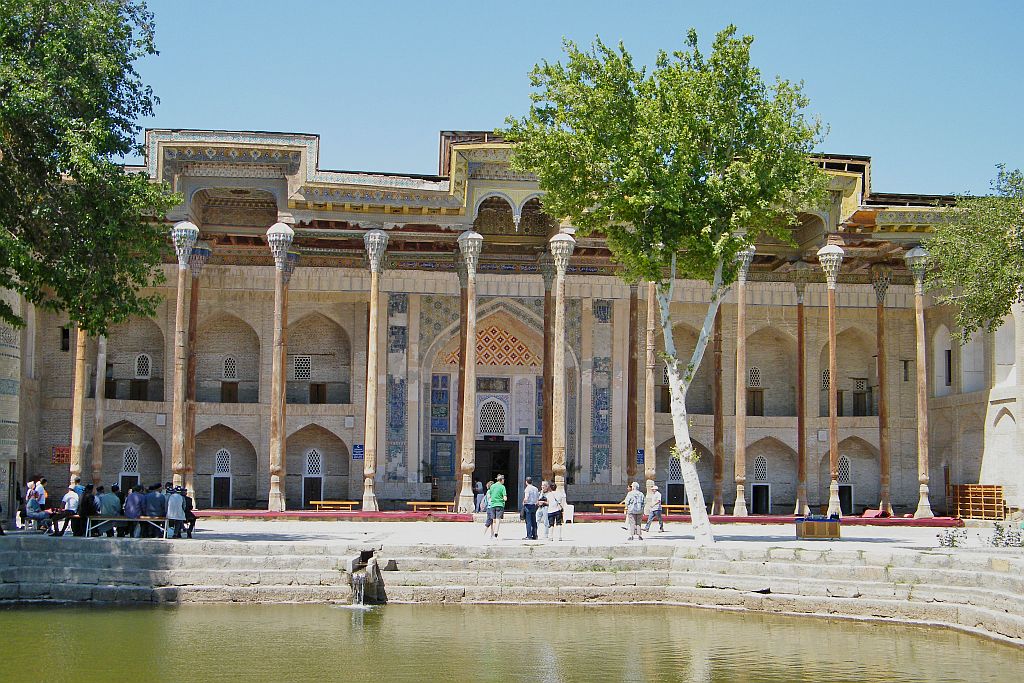 Sie beginnen Ihren Rundgang mit der Ark-Zitadelle, einst Regierungssitz und Palast der Herrscher von Buchara. Danach spazieren Sie zum prächtigen, aus gebrannten Ziegelsteinen erbauten Mausoleum der Samaniden, gelegen in einer schönen Parkanlage, inmitten von vielen Blumenbeeten. Es entstand seinerzeit außerhalb der Altstadt als Begräbnisstätte für die Familie von Ismail Samani, einem bedeutenden Emir aus der Samaniden-Dynastie.