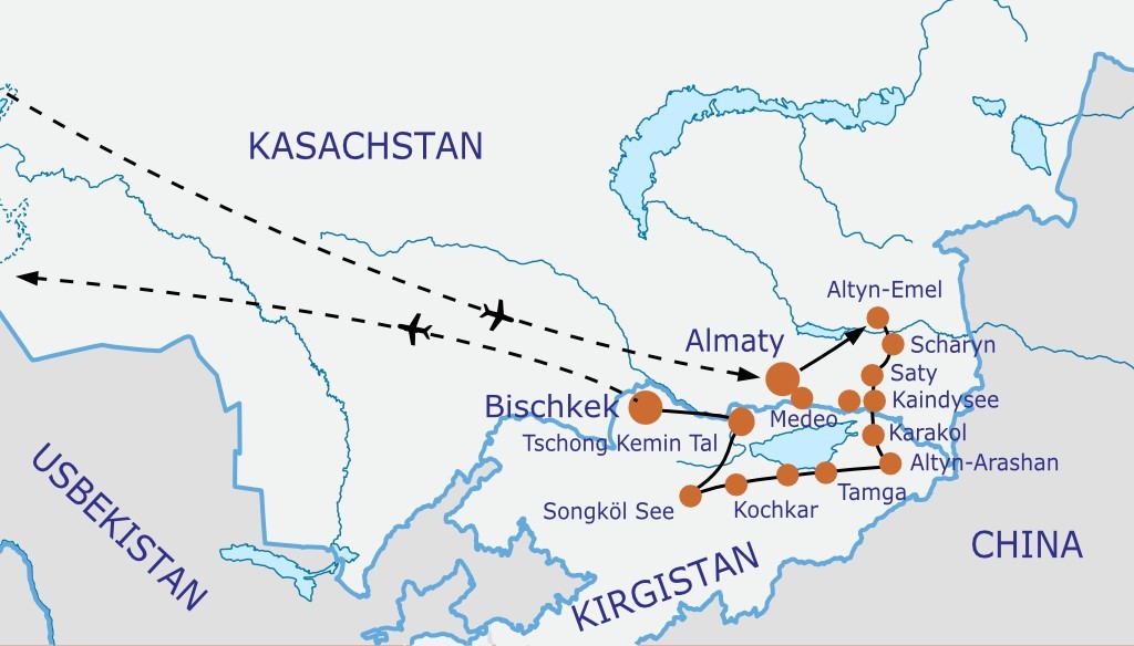 - Internationale Flugverbindungen (Deutschland – Almaty und Bischkek – Deutschland ) auf Anfrage.