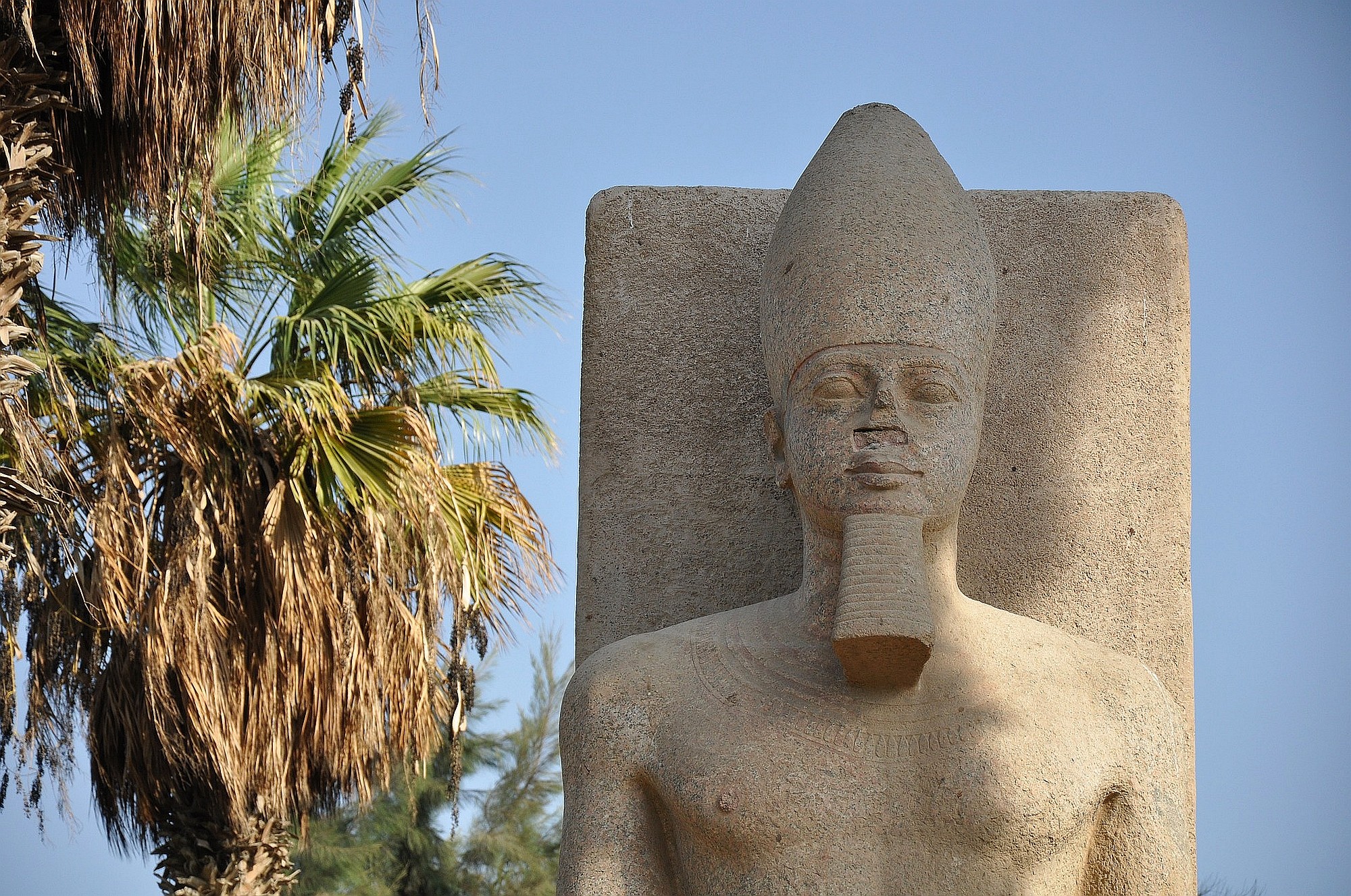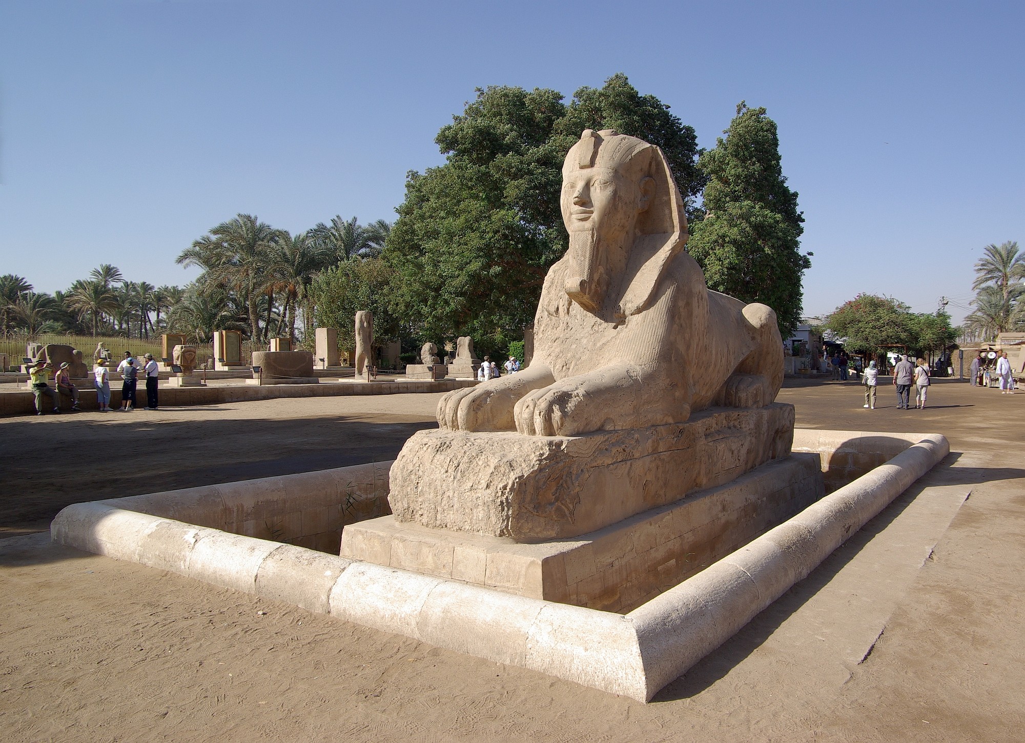 Fahrt nach Memphis. Im Altertum war Memphis fast drei Jahrtausende lang die größte Stadt Ägyptens. Ihre Ruinen liegen rund 20 Kilometer südwestlich von Kairo. Die Ruinen verteilen sich auf ein großflächiges Gebiet, das von Landwirtschaft und Palmenhainen durchzogen ist. Dazwischen liegt ein arabisches Dorf, Mit-Rahina genannt.
