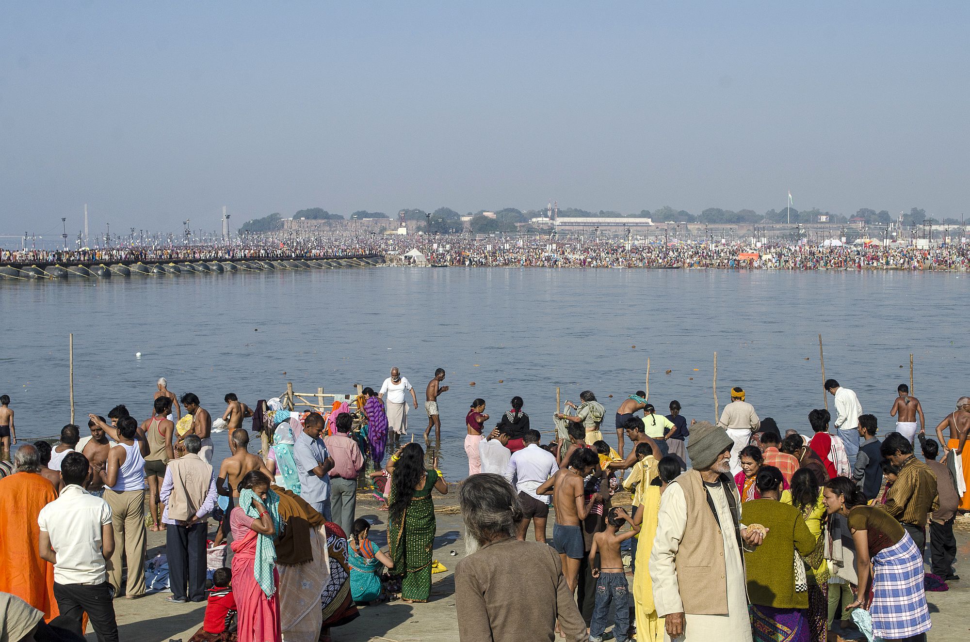 Das Haupthighlight für die meisten Pilger während einer Prayag Kumbh Mela ist das Beobachten eines heiligen Bades am Sangam. Das Baden in einem der heiligen Flüsse soll bereits eine tief reinigende Wirkung haben, doch wenn sich die drei Flüsse treffen, wird die Reinigung um das Hundertfache und während des Kumbh Mela sogar um das Tausendfache verstärkt. Neben den heiligen Bädern umfasst das Kumbh Mela zudem aufwändige religiösen Zeremonien, Gesänge, Rituale und Vorträge von spirituellen Führern.